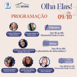 O Evento Olha Elas foi realizado em 09/10/2024, e a temática foi discutida em uma programação de oficinas e palestras. Proporcionou uma rica troca de experiências, contribuindo para a saúde da mulher, ampliando as discussões sobre equidade de gênero nos aspectos sociais, educacionais, culturais e econômicos, além de promover a formação complementar de pesquisadores e estudantes (do ensino superior, fundamental e médio), bem como da comunidade da Região do Semiárido do Rio Grande do Norte.